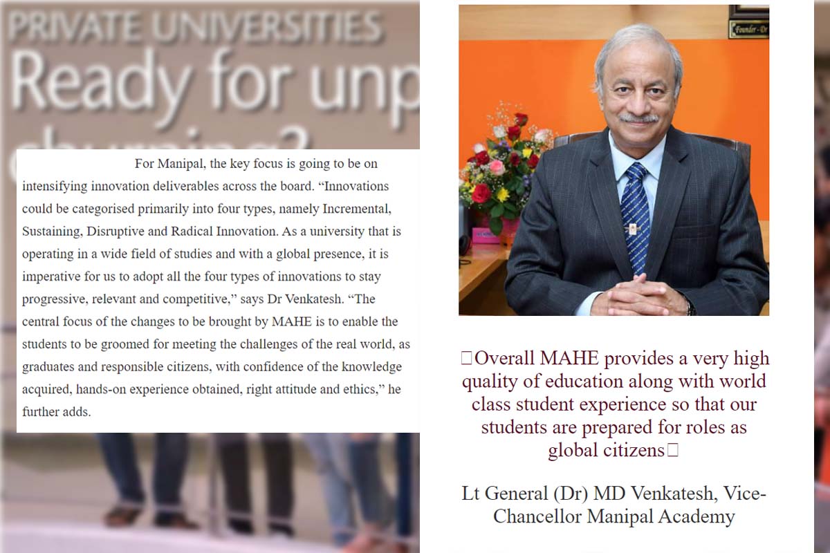 An academician and administrator par excellence, Lt General (Dr) M.D. Venkatesh is currently serving as the Vice Chancellor at Manipal Academy of Higher Education (MAHE), Manipal.