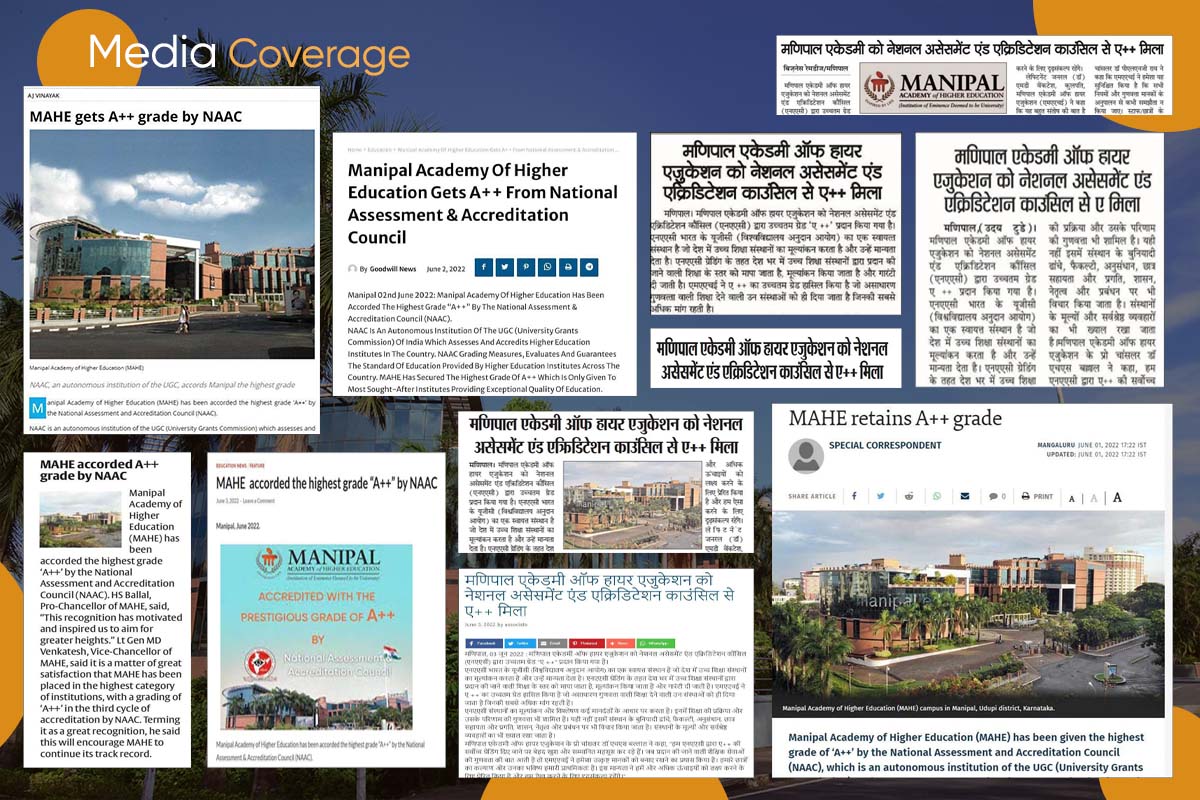 Lt Gen (Dr) M. D. Venkatesh, Vice-Chancellor, Manipal Academy of Higher Education (MAHE) said “It is a matter of great satisfaction that MAHE has been placed in the highest category of institutions with a grading of A++ in the third cycle of accreditation by NAAC. This is indeed a great recognition, and this will encourage us to continue our track record of achieving excellence in education. I congratulate and thank the faculty, students, non-teaching staff, alumni, parents, and other stakeholders who have supported MAHE in its journey towards excellence.”