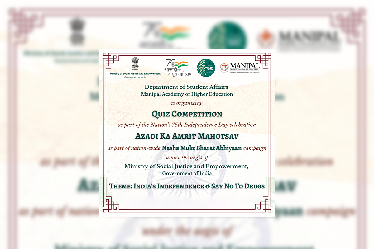 The Department of Student Affairs, Manipal Academy of Higher Education (MAHE), Manipal, will be organizing a Quiz competition on 04-08-2022 for PUC students as part of the celebration of Azadi Ka Amrit Mahotsav. The theme for the quiz competition will be "INDIA'S INDEPENDENCE & SAY NO TO DRUGS." The last date for the registration is 2nd August 2022.