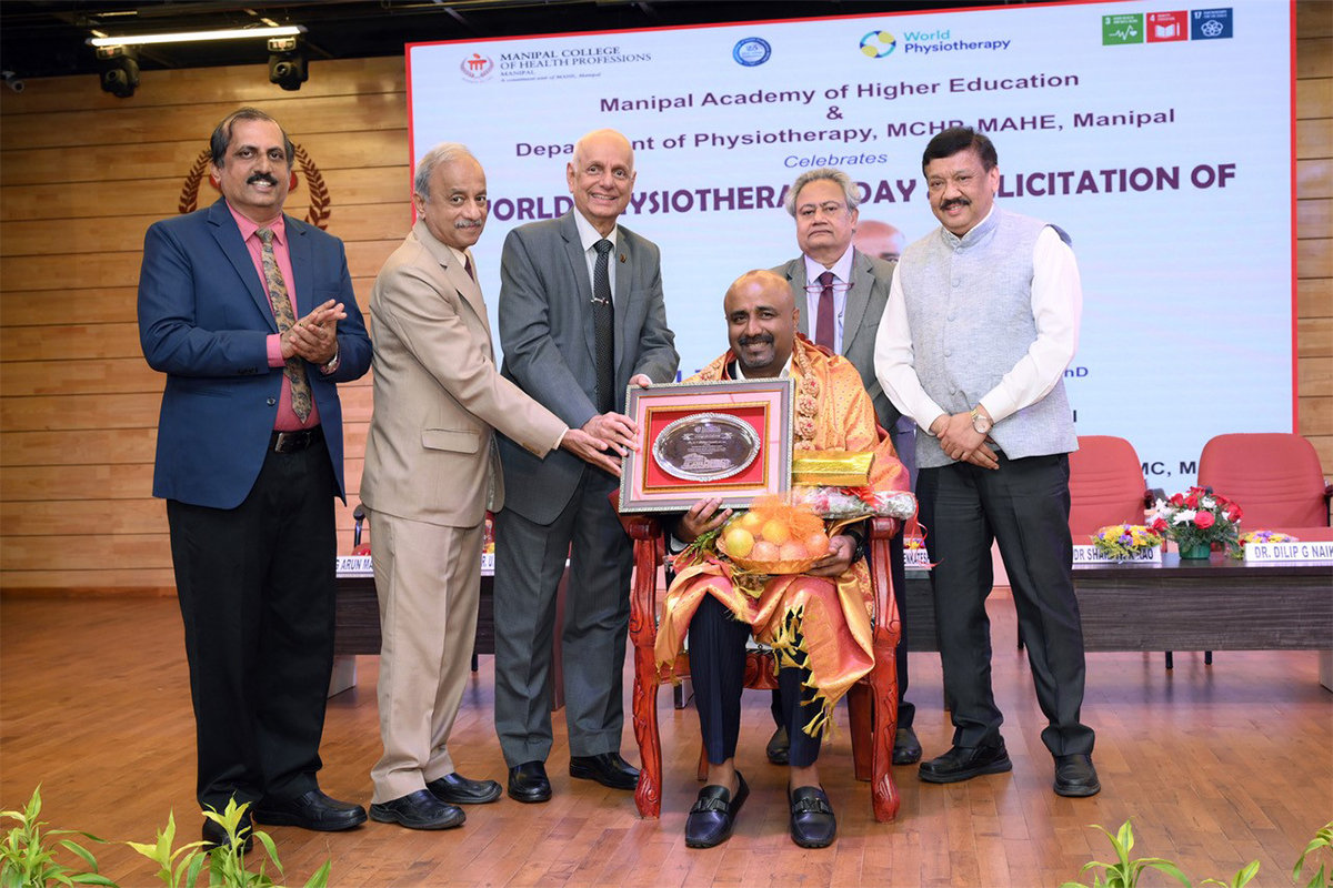 Manipal, 9th September 2024 – The Department of Physiotherapy at the Manipal College of Health Professions (MCHP), a constituent unit of the Manipal Academy of Higher Education (MAHE), celebrated World Physiotherapy Day with a special felicitation ceremony for Dr. U.T. Ifthikar Fareed, MPT, PhD. The event honoured him for his recent appointment by the Karnataka Government as the Chairman of the Karnataka State Allied and Healthcare Council. MAHE organised the felicitation to recognise his contributions to physiotherapy and his new leadership role in Karnataka’s healthcare system.
