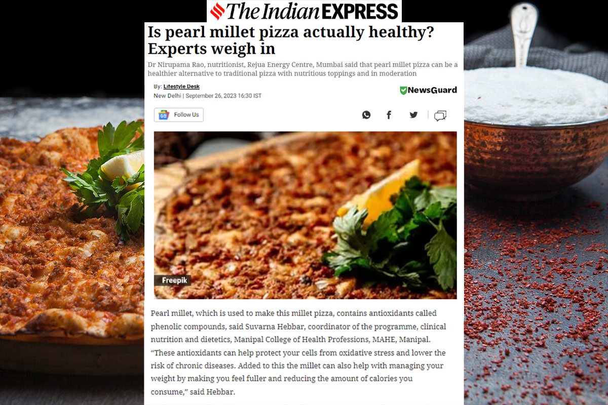 Manipal 26, September 2023: In the article "Is pearl millet pizza actually healthy? Experts weigh in", valuable insights are given by Suvarna Hebbar, programme coordinator, clinical nutrition and dietetics, Manipal College of Health Professions (MCHP), Manipal.