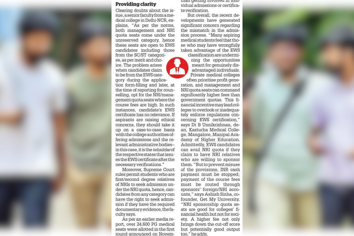 The Role of EWS Students in NRI and Management Quotas