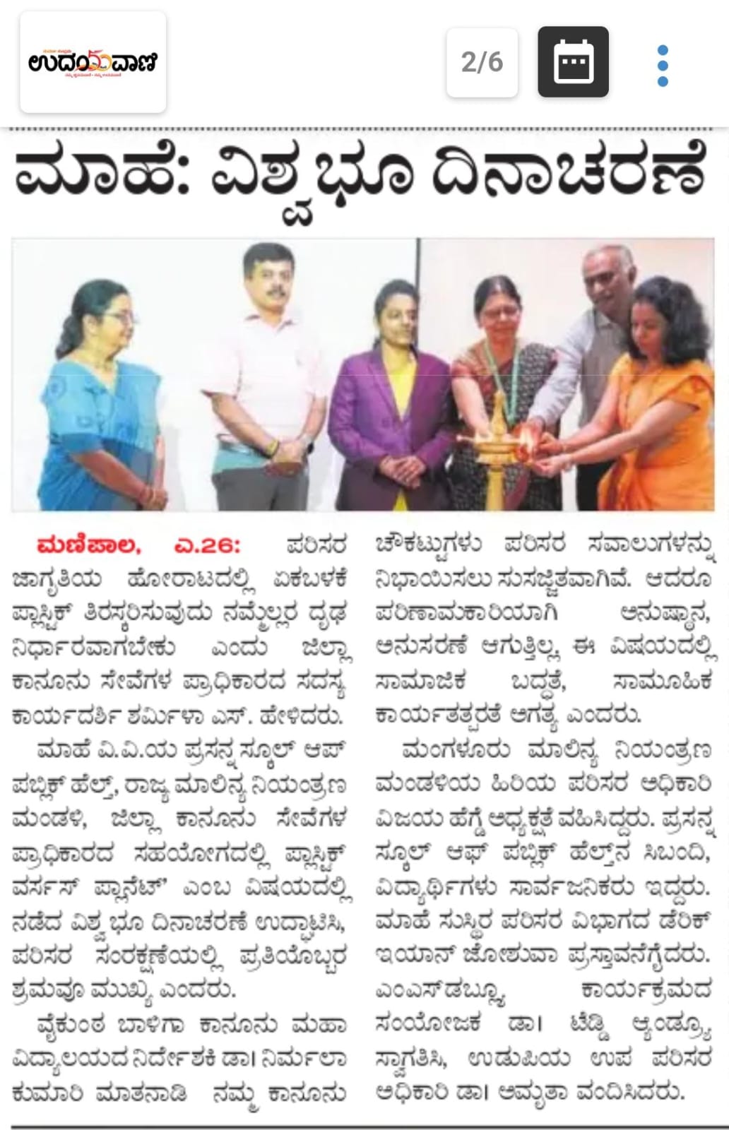 Ms Vijaya Hegde (Regional Senior Environmental Office [RSEO], Karnataka State Pollution Control Board [KSPCB], Mangaluru) Presided over the event.