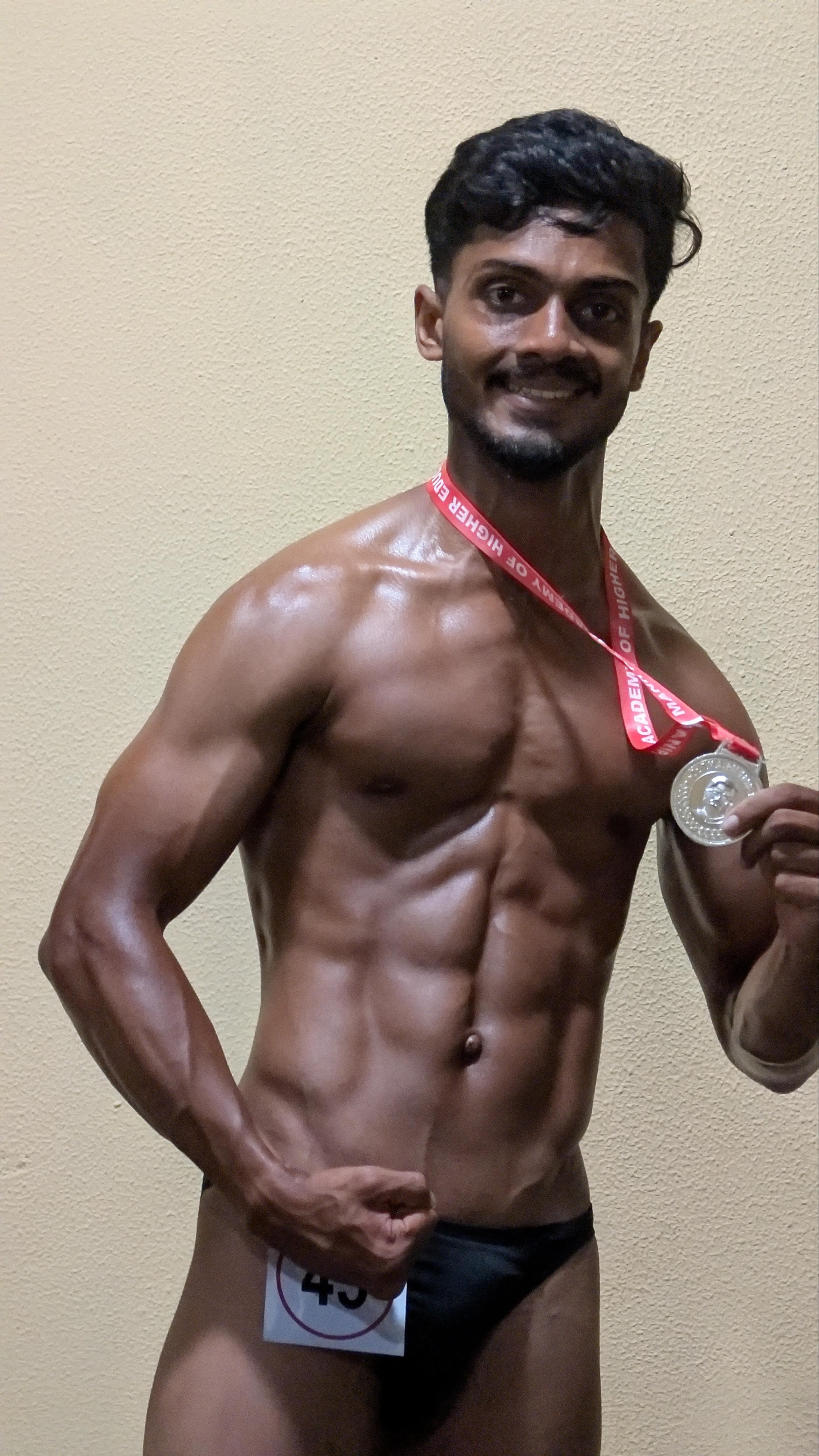 Mr Deepak D Shetty (Student, MSc Biostatistics Programme, PSPH, MAHE, Manipal) won the Second Prize in the MAHE Inter Collegiate Best Physique Competition (Men) in the 55 to 60 kg Category.