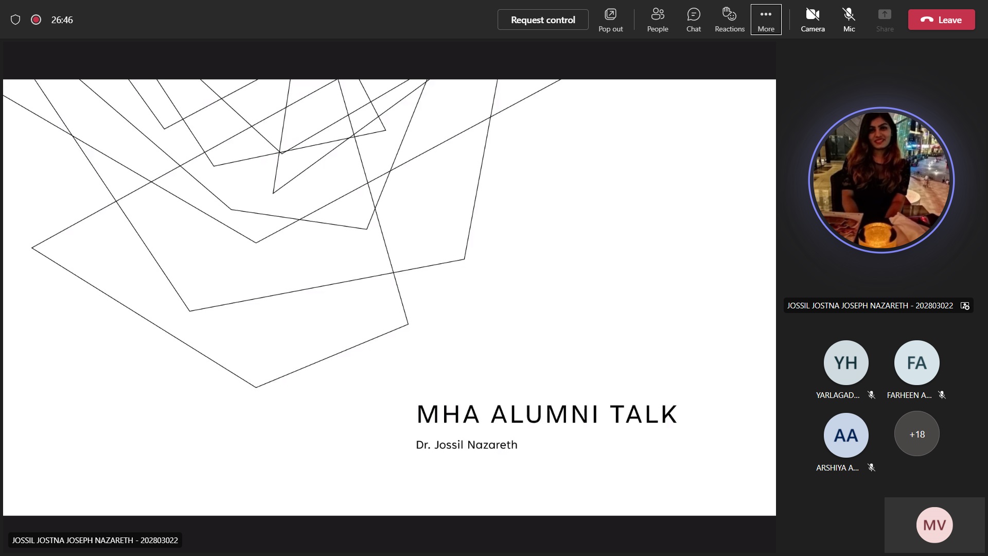 Dr Jossil Nazareth (Management Consultant, Dubai, United Arab Emirates; Alumna of the MHA Programme, Prasanna School of Public Health, 2020-2022 batch; recipient of Dr TMA Pai Gold Medal interacted on data, interacting with people, skills, talent, about marketing, operations. and reminiscence her time in manipal.