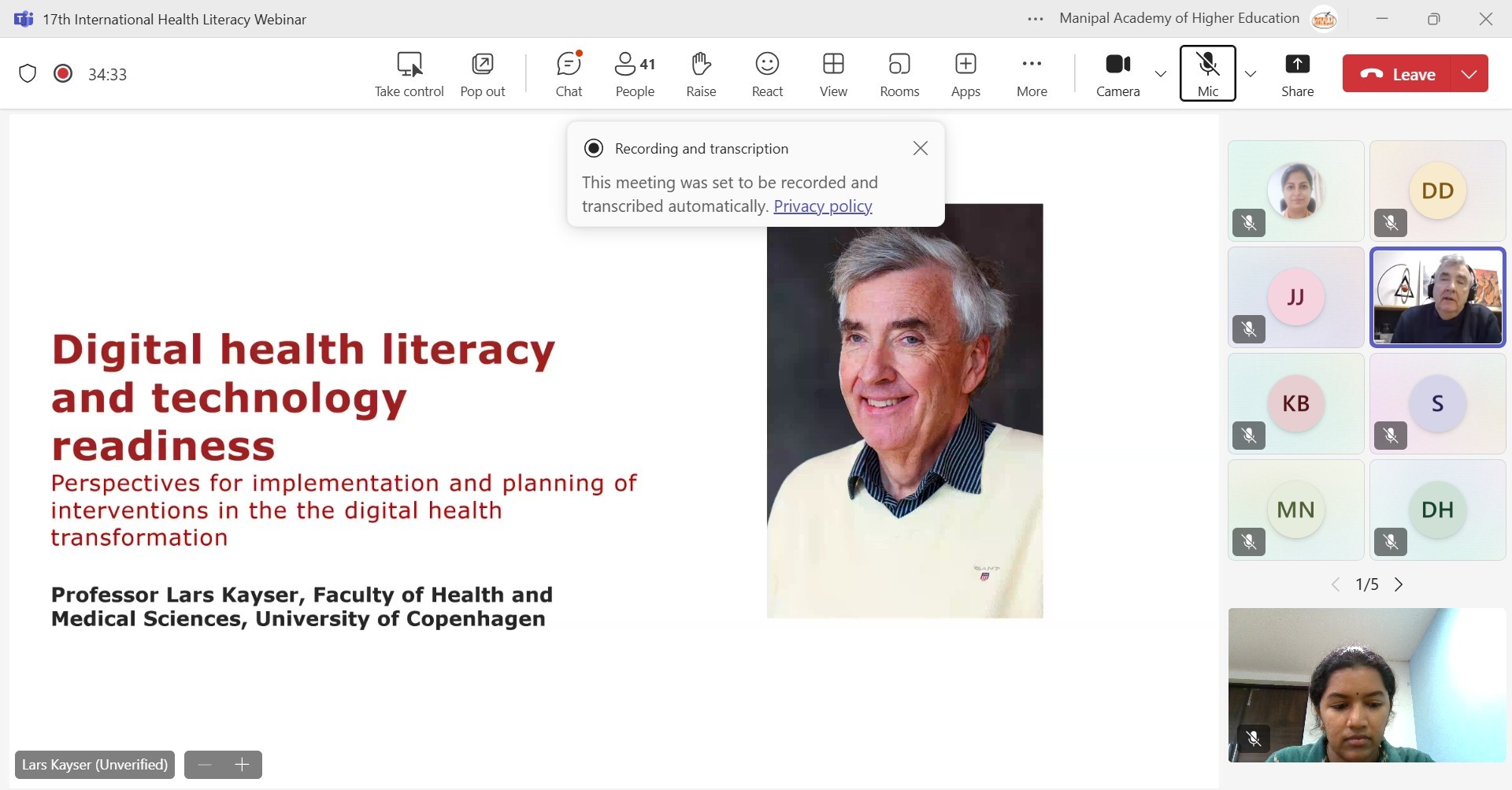 Manipal Health Literacy Unit (MHLU), Prasanna School of Public Health (PSPH), Manipal Academy of Higher Education (MAHE), Manipal organised the 17th International Webinar on Health Literacy (as part of Health Literacy Webinar Series 2025) for healthcare providers, researchers, policymakers, industry, academia, and the public on Friday, January 31, 2025, at 12:30 IST / 07:00 GMT virtually through Microsoft Teams.