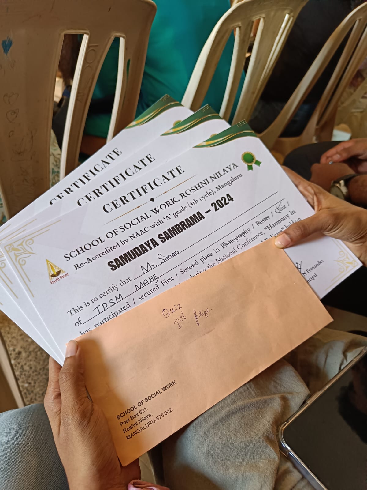 School of Social Work, Roshni Nilaya, Mangaluru organized a National Conference on "Samudaya Sambrama" on the Premises of School of Social Work, Roshni Nilaya, Mangaluru on Friday, March 22, 2024. On this occasion, a “Quiz Competition - Storm your Brain on Environmental Protocols, Issues and Policies” was held.