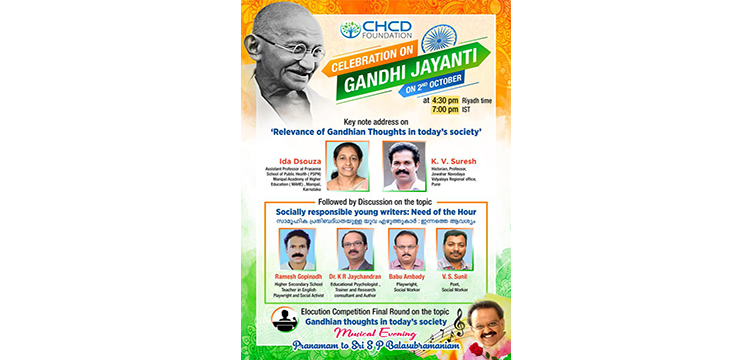 Ms. Ida Dsouza (Faculty, MSW Program, Department of Global Health, PSPH, MAHE, Manipal) had delivered the Key Note Address during the Webinar on ‘Relevance of Gandhian Thoughts in today’s society’ held on the Occasion of Gandhi Jayanti on October 2, 2020 Organized by CHCD Foundation.