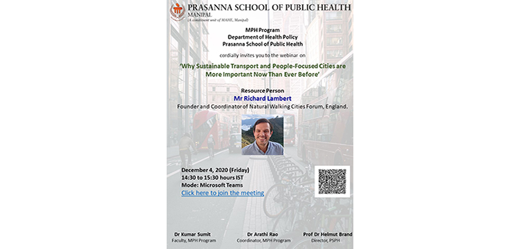 MPH Program, Department of Health Policy is organizing a webinar on ‘Why sustainable transport and people-focused cities are more important now than ever before’ through Microsoft Teams on December 4, 2020 (Friday), 14:30 – 15:30 hours IST.