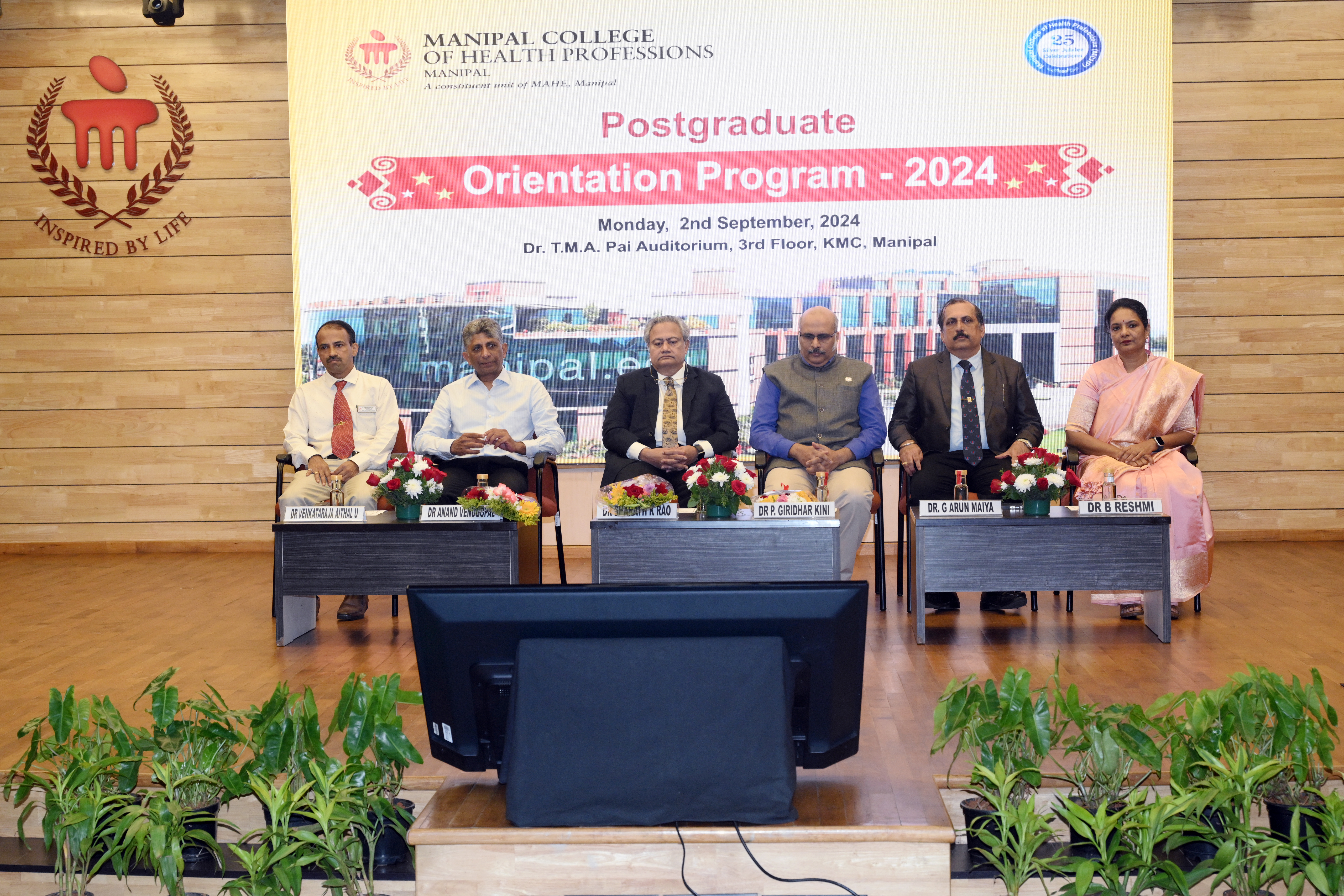 Manipal College of Health Professions (MCHP) hosted  orientation program 2024 to welcome its new batch of postgraduate students on  2nd September  2024  at Dr. TMA Pai Auditorium, KMC, Manipal.