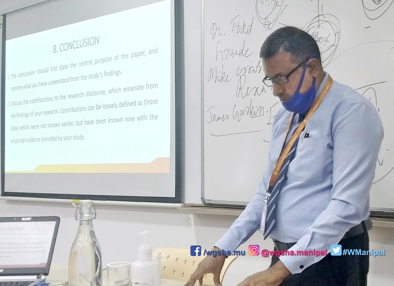 March 6, 2021: A session on academic writing was organized by Centre for Hospitality and Tourism Research (CHTR), WGSHA on March 6, 2021 for the faculty of Welcomgroup Graduate School of Hotel Administration (WGSHA). In the workshop Dr. KP Nandan Prabhu, Associate Professor, Manipal Institute of Management - MAHE delivered lecture on the topic ‘What is the ideal structure of an empirical research paper in management research’.